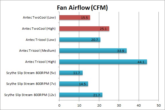 Another interesting point is that adding a fan to the mounts in the very front of the chassis helped our CPU temperatures a bit, but overall made our motherboard and GPU temperatures worse. It's odd to think of a chassis doing better without a front intake fan, but this chassis has been optimized by Antec to operate under negative pressure (more exhaust fans than intake) which these results fully support.