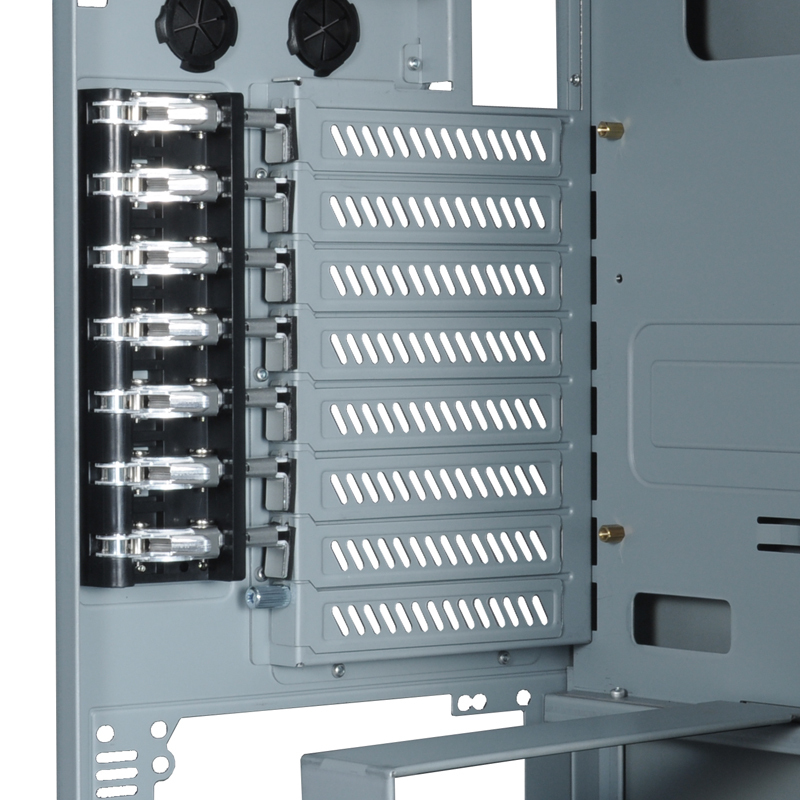 PCI cards are secured using a series of levered latches, which while very convenient in some instances, would in no way survive shipping. They are easily removable, but since they add to the cost of the chassis, it would be a bit unfortunate to pay for something that is not used. This type of latch will also have problems with some video cards that have large heatsinks which may get in the way of these latches.