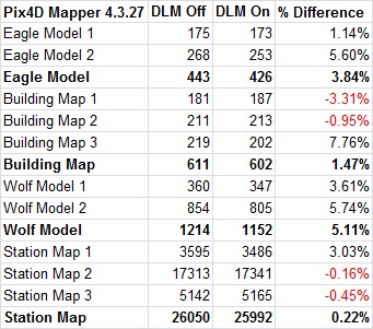 In order to be able to test multiple image sets with multiple iterations, we put together AutoIt scripts that run Pix4D and PhotoScan without manual input. Because of the automation we used, all steps were performed back-to-back with no editing in-between to clean up point clouds. That means these results may not perfectly match up with what you'd see when using these programs in a real-world workflow, but it removes any chance of human error altering results between runs. We did still observe small variances on total processing time with each image set, so we ran them three times and selected the fastest result (lowest time) for each image set to be included in the charts below.