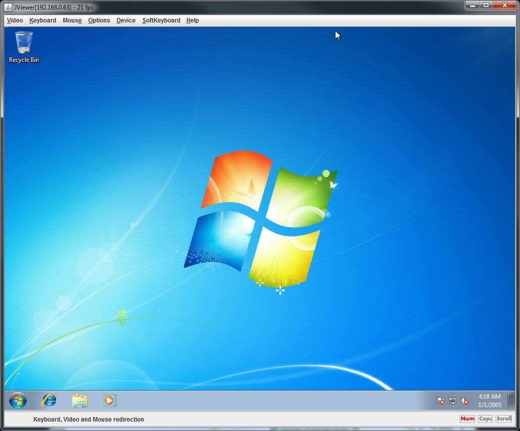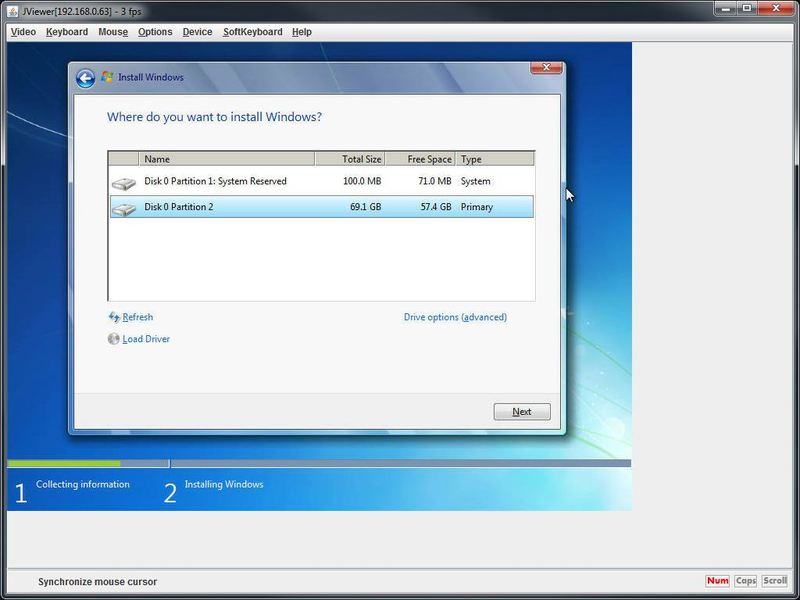 Using only the Web Based Interface, we were able to remotely configure the BIOS and install Windows 7 (using a redirected ISO from the remote system) with no problems. Technically the machine was only a few feet away, but since it was completely done through the network the procedure was no different than if the machine was in a room on the other side of the building.