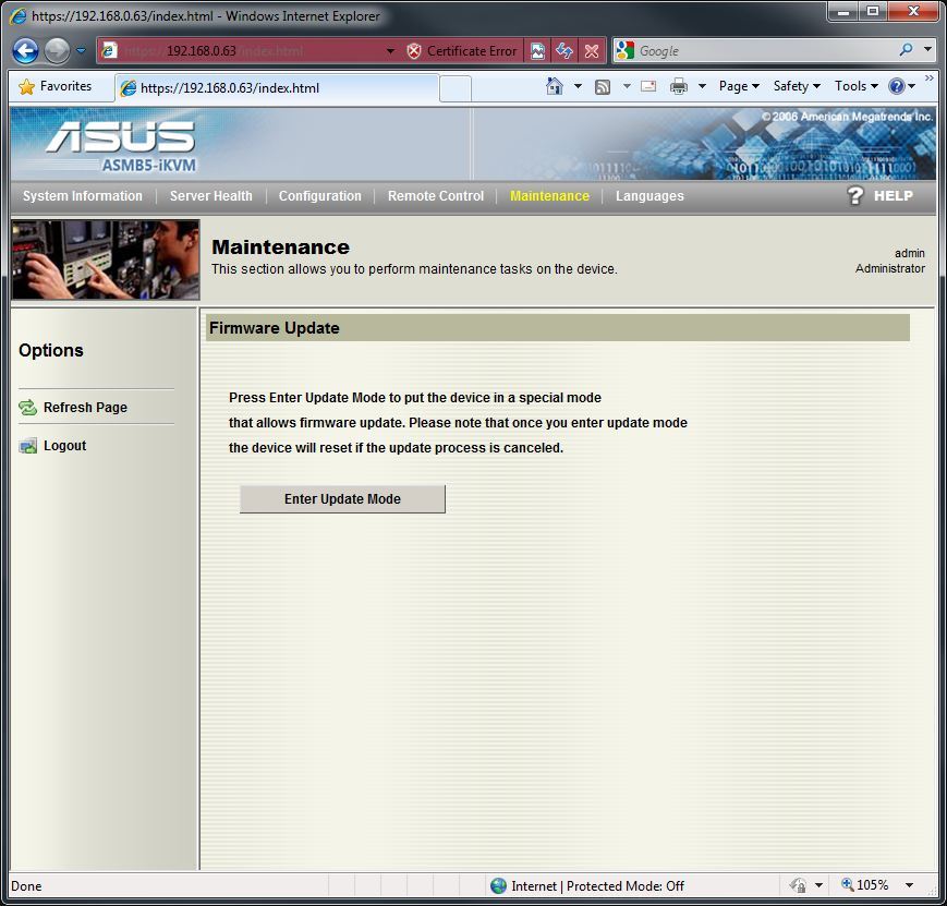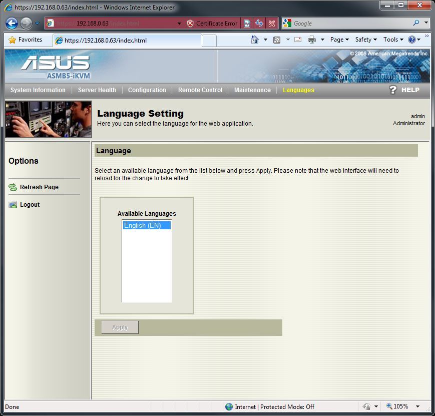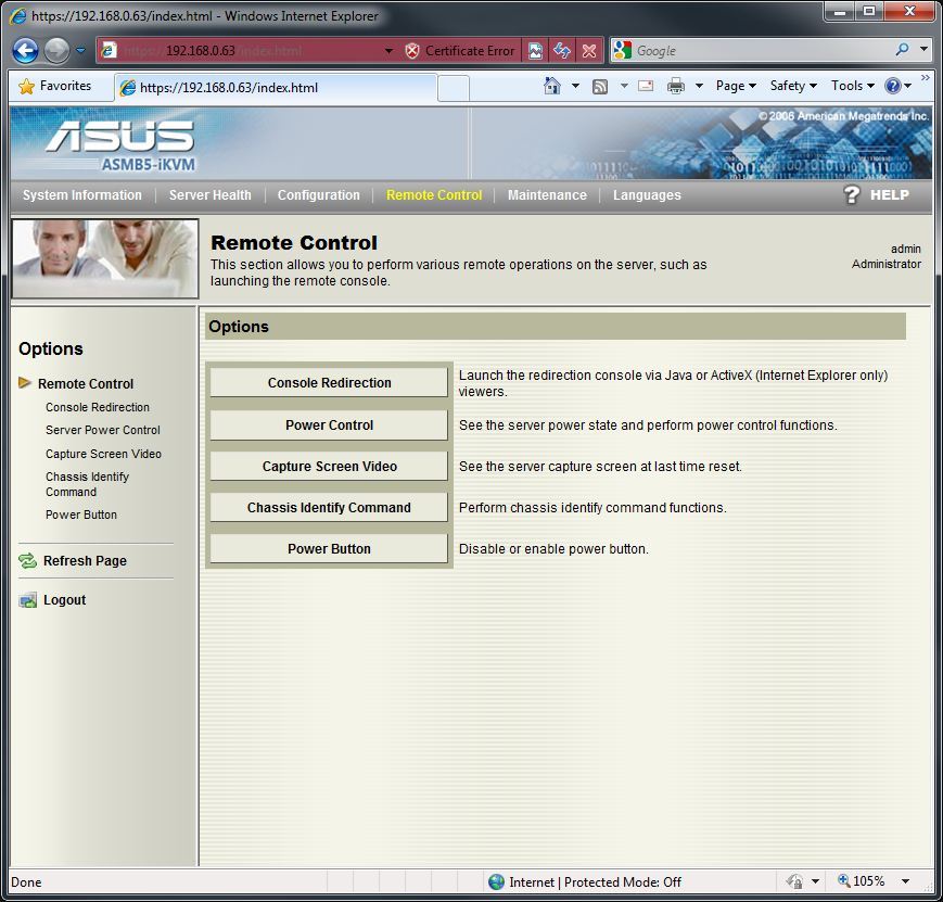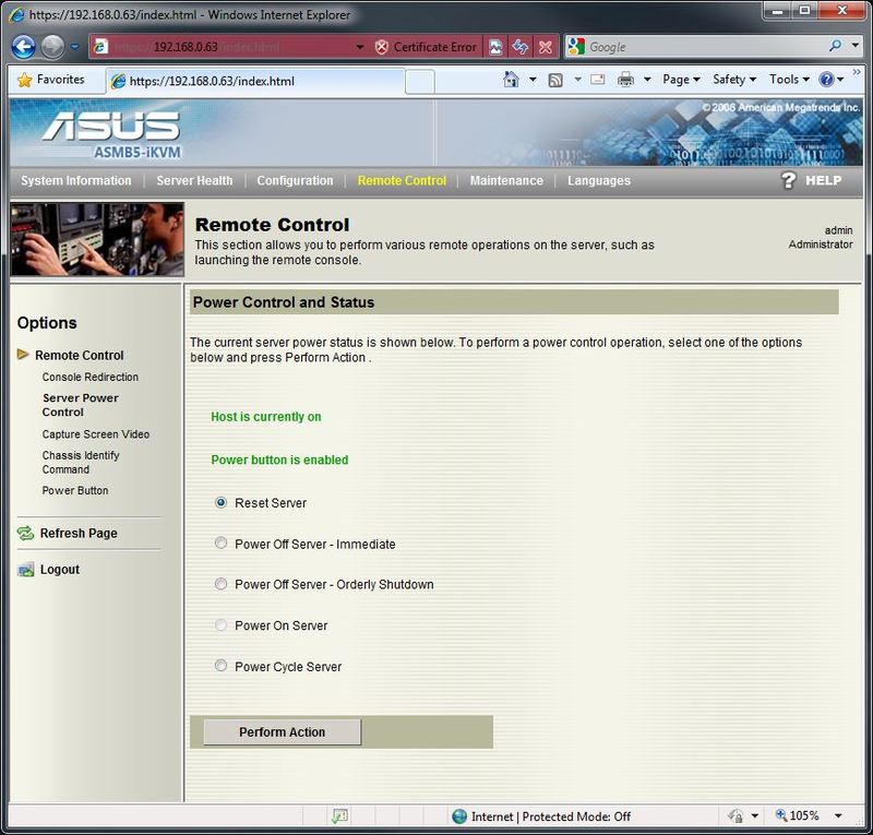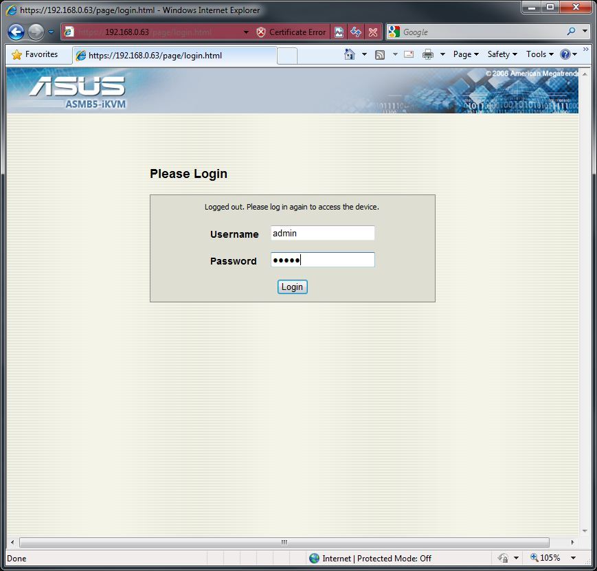 With the Asus ASMB5-iKVM, there are two ways to remotely access the machine. The first is to install the “Remote Console” software provided by Asus. The second is to access the system by inputting the IP into Internet Explorer and using the “Web Based Interface”. In this article, we are only going to be looking at the Web Based Interface as the Remote Console simply does not have any functionality that is not present in the Web Based Interface and has many, many more limitations. A few brief examples are that the iKVM functionality in the Remote Console will only work in the BIOS and that there is no way to change the remote access username and password.