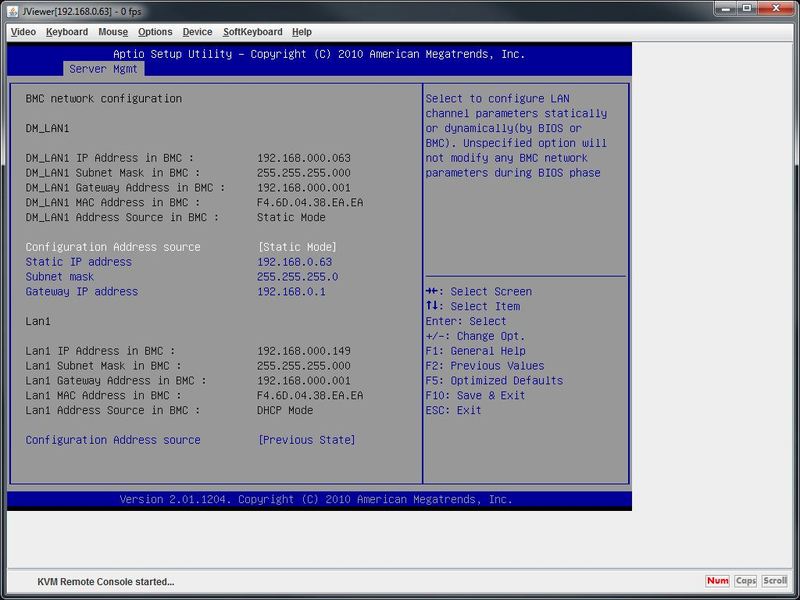 The one thing we did do locally on the server is to setup the static iKVM LAN IP address. While the iKVM port does default to using a DHCP address, without knowing what that address is you cannot remotely access the server to change it through the Web Based Interface.
