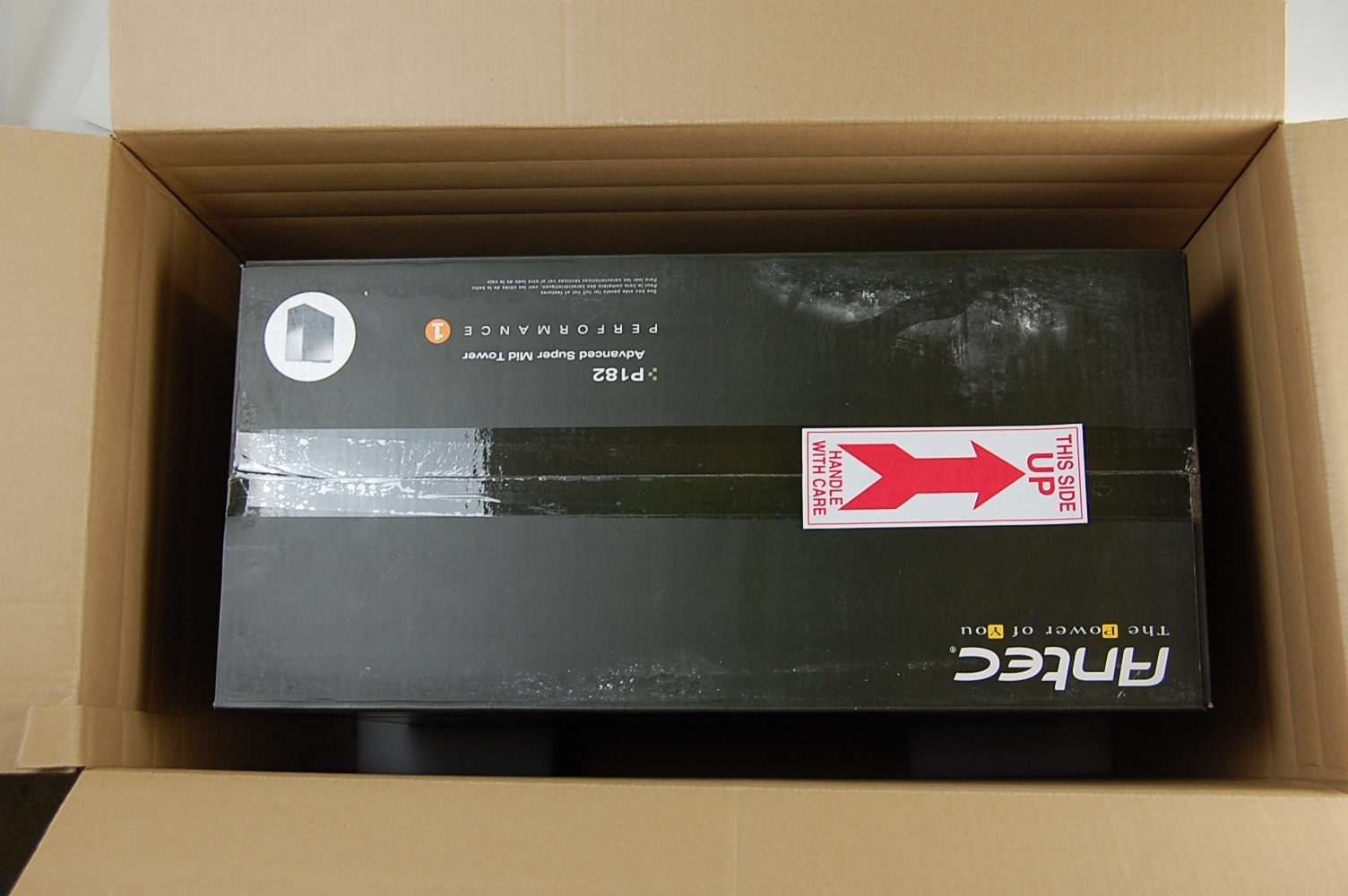 Turn box over to the upright position (the door of the computer should be facing up).