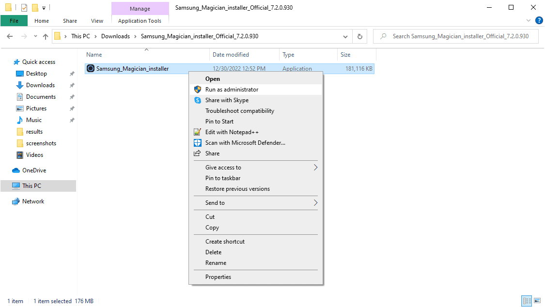 Extract the downloaded package, and run the ‘Samsung_Magician_installer’ executable.