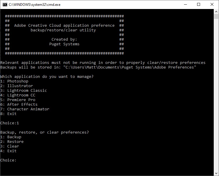 This small .bat utility is extremely simple, and follows the guidelines that Adobe has provided to backup and clear application preferences for Photoshop, Illustrator, Lightroom Classic, Premiere Pro, and After Effects