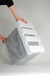 Put remaining foam end on the opposite side of the computer (bottom of the computer). Leave the front of the computer facing down.
